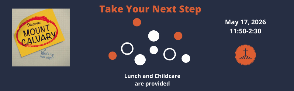 Our next Discover MCC class is Sunday, May 17th from 11:50am - 2:30pm. During this class, you will have an opportunity to have lunch with the church staff as well as learn more about the history, ministries, and beliefs of Mount Calvary Church. It will also be an excellent opportunity to get to know other families "new" to Mount Calvary and interact with the ministry leaders of the church!