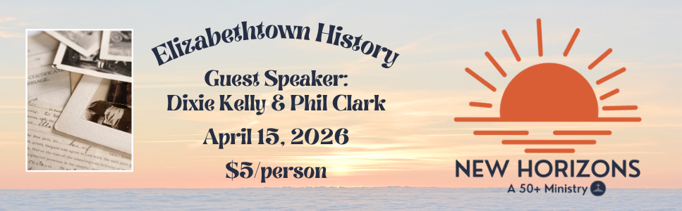 Our program starts at 10:30AM. We will hear from Dixie Kelly and Phil Clark from the Elizabbethtown Historical Society as they share about the history of our town.